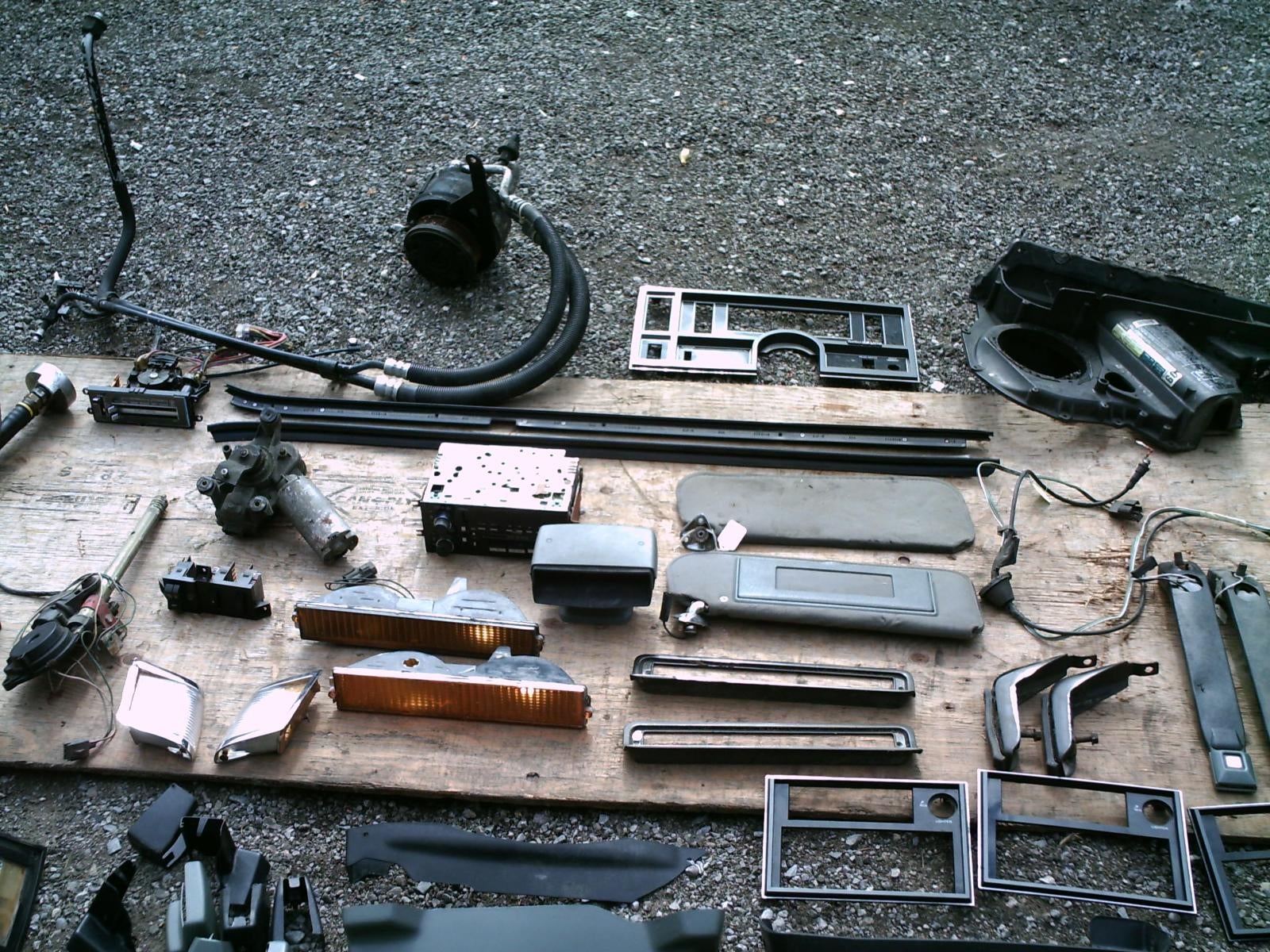 I have one that came out of a 86 g/n dont know if it works or not but i would think that the ahave a set of front black seat belts and third break light in black also $100.00 for all plus the ride.